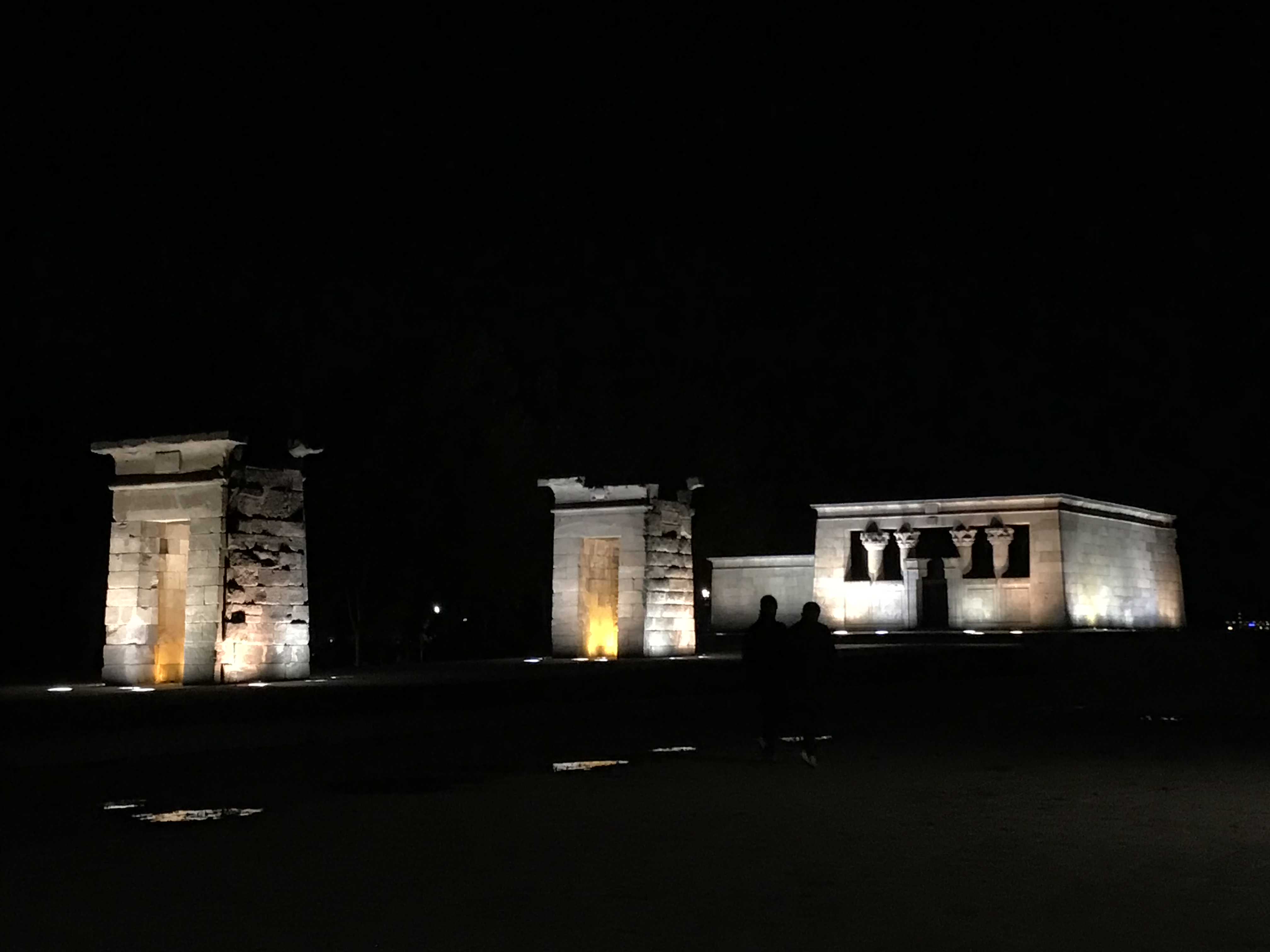 Like for instance on our first night there, when I went to walk Stella in the nearby park and came across an ancient Egyptian temple on a hilltop: the Temple of Debod, moved from Aswan before the construction of the Aswan Dam. UNESCO worked to avoid its destruction and Egypt donated it to Spain. Benji and I walked back there the next morning, and had a nice but foggy view from the hilltop, out over the royal palace.