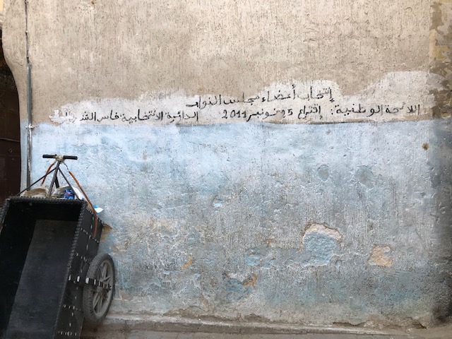 On the first day we had a guide for a few hours, which was mostly disappointing but with some small benefits. For instance, he explained to us that certain graffiti we saw was political, including the paintings below in which the figures represent different parties to allow illiterate voters to work the ballot. He also walked us hurriedly by the major architectural monuments in the Medina, almost all of which are closed to non-Muslims, and would say at each one only “there’s your postcard” before we hurried on.