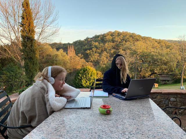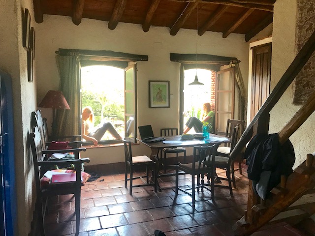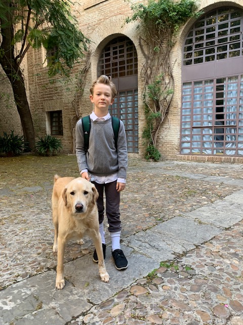 Mimi and Ibby were studying for some exams on our second trip, but at least they were able to study while looking out on cork-covered hills. And while they studied Benji played with Stella, or read his Tin Tin books, or built fires in the fireplace, or amused himself by sliding back and forth through a little door in the wall that separated one isolated bedroom from the rest of the house. Back in Sevilla he also dressed as Tin Tin for “world literature day.”
