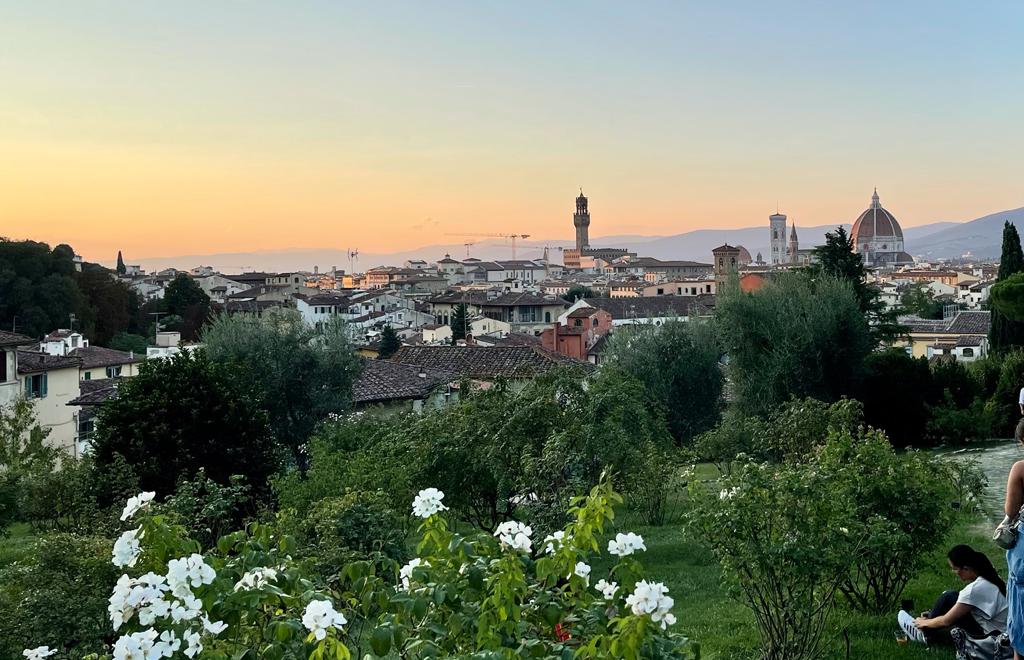 Unfortunately I wasn’t allowed into the Palace or any other museums or churches, because my vaccination QR code wasn’t showing as valid. In Florence, entry into any public indoor space requires proof of vaccination through a “green pass,” which consists of a QR code that the propriertor or ticket-taker scans to approve or deny entry. Ibby’s Spanish QR code was displaying green; mine was showing red. So we did more walking. Down the streets, across the Arno and up to the Piazzale Michelangelo, which is a lookout over the city.