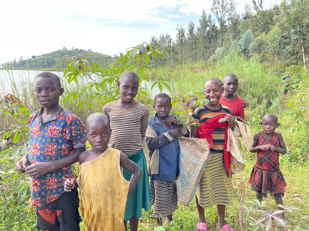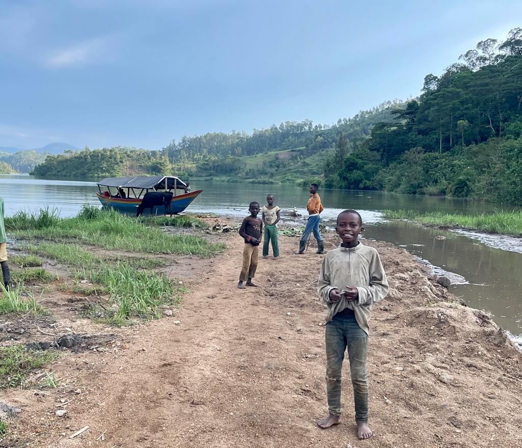 On Sunday we visited two coffee stations, arriving at both by boat. At each stop as we disembarked we would be surrounded by children — running to the shore from their play or from watching goats or tending fields — chanting “Give me my money” or “Cash money! Cash money!” or sometimes, especially on first sight of us, “Umuzunga!” (which means “white person” in Kinyarwanda).