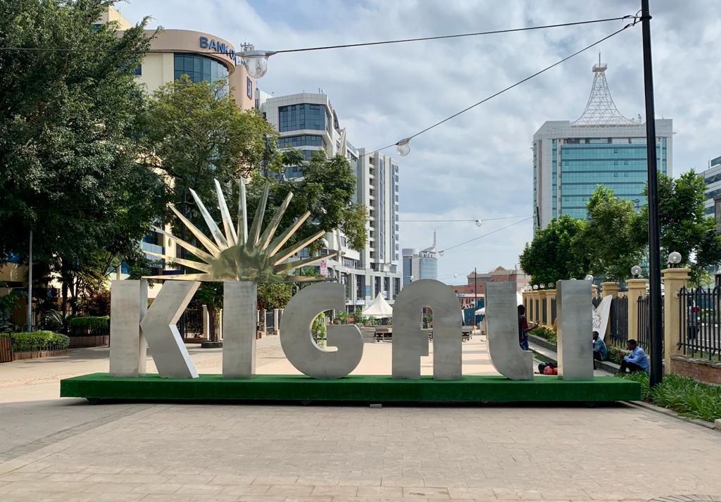 The downtown area of Kigali has some modern glass-walled office buildings, but also many two and three story buildings with small shops on each level that open to the street. At every corner, crowds of men in Airtel vests sat on idling motor scooters: these are the moto taxis. Men on bicycles with padded seats over the rear wheel wove through traffic or waited near traffic lights: these are the bike taxis. Outside of an old theatre women were selling t-shirts and leggings off piles on their arms and shoulders.