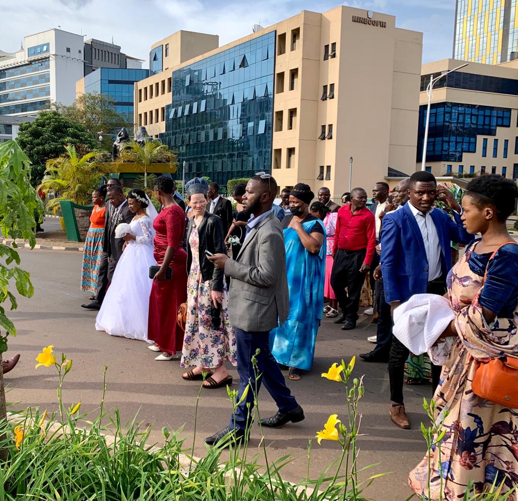 As I neared the Mariott again, which is just past the president’s house and across from the Chinese embassy, I saw a wedding party crossing the road and heading for city hall. The celebrants laughed at me taking pictures, presumably because I was such an odd sight beside the half-dozen Rwandans who were also photographing the scene. One of the groomsman kindly called out to me, “Join us; you are welcome.” I didn’t want to intrude, though, so I continued back to the hotel.
